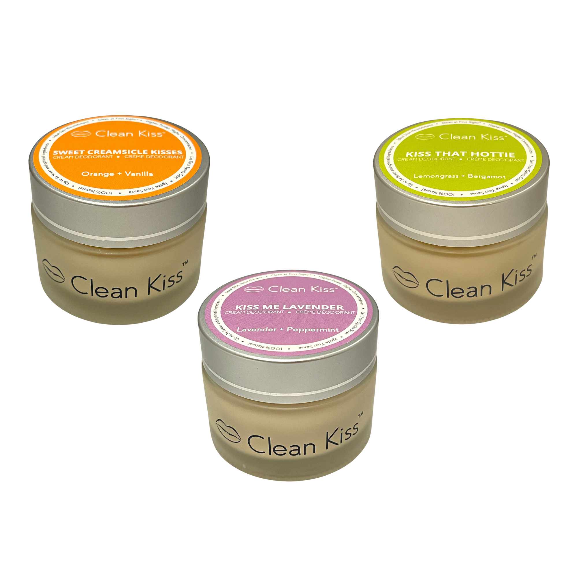 Our three original scents which still remain our top sellers: Sweet Creamsicle Kisses (orange + vanilla), Kiss Me Lavender (lavender + peppermint), Kiss That Hottie (lemongrass + bergamot).